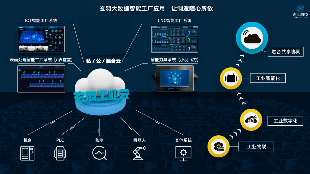 到今天,玄羽坚持自己的发展路径,产品层面从类似核心工序CNC智能刀具系统【小羽飞刀】、表面处理智能系统【e表堂堂】两大拳头产品切入,再逐步扩展出更丰富的场景,目前已经形成iMAS工业大数据平台、玄羽工业AI平台、工业数智化解决方案、智能机加厂、智能自动化应用等多样的数智化软硬件产品,为制造产业链赋能。也为企业带来实打实的效益,例如耗材刀具 10%节省,CNC机台使用寿命 20%增加,EVT(上线验证时间) 30%节省,人力40%节省,决策效率50%提升,良品率3%提高等等。在客户层面坚持从头部客户高起点切入,围绕3C最具有示范效应的苹果产业链的智能化升级,在头部形成优势壁垒,再随着先进技术在行业的普惠拓展到更多领域,目前已服务3C制造、汽车制造、化工、装备制造、航空航天、国防工业、医疗器械等行业众多头部客户。